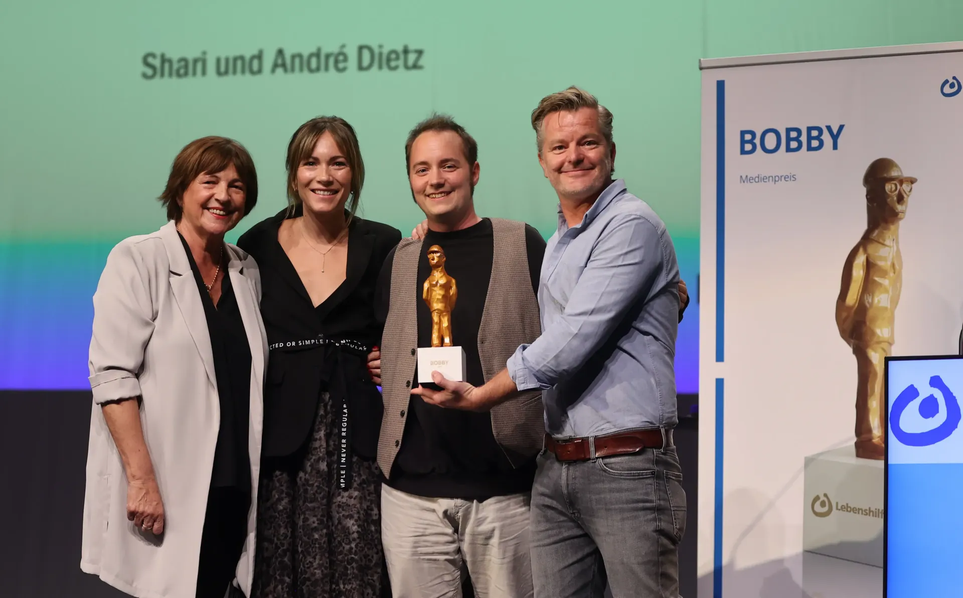 "Thanks to the Dietz family, it becomes visible how fundamentally important inclusion is for society, how we can all benefit from it." That's what Ulla Schmidt, Chairwoman of Lebenshilfe and former Federal Minister, said yesterday evening when she awarded actor André Dietz and his wife Shari with the BOBBY 2023.