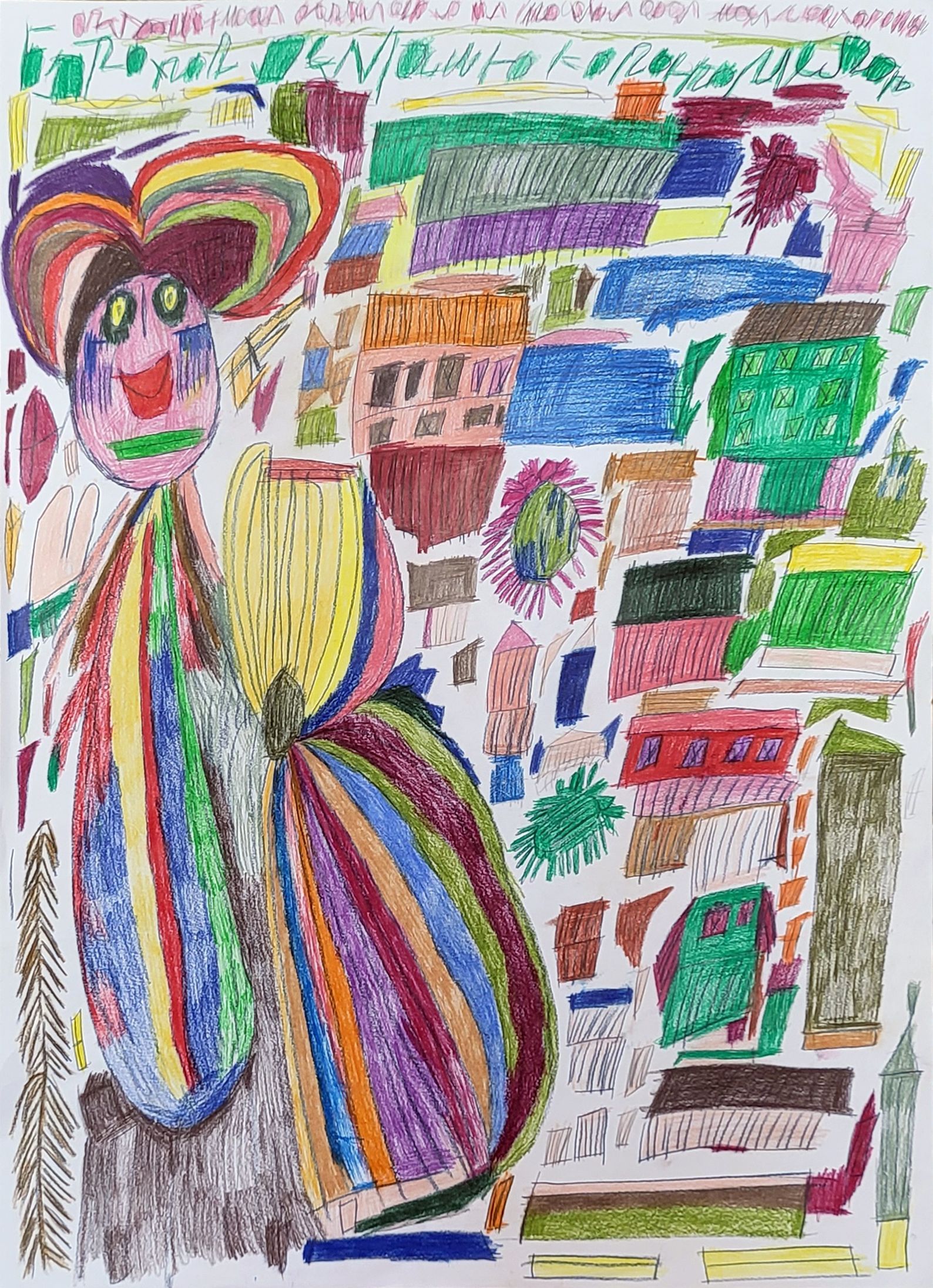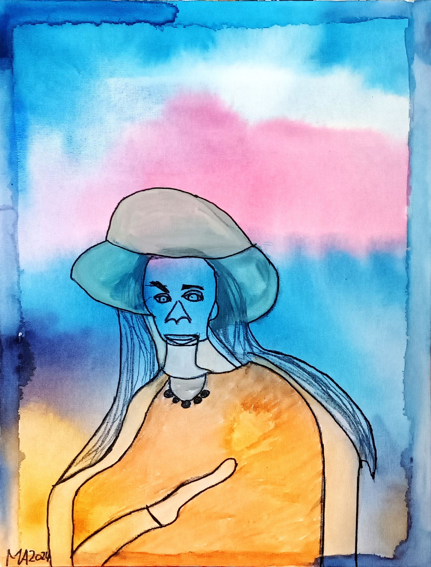 Khrystyna Maidaniuk arbeitet seit 2023 im Kunstraum, nachdem der Aufenthalt in der Ukraine durch die Kriegsereignisse für sie zu gefährlich wurde. Neun Bilder von ihr wurden ausgestellt. Sie drehen sich um die Erinnerungen, die sie an ihre Heimat hat.